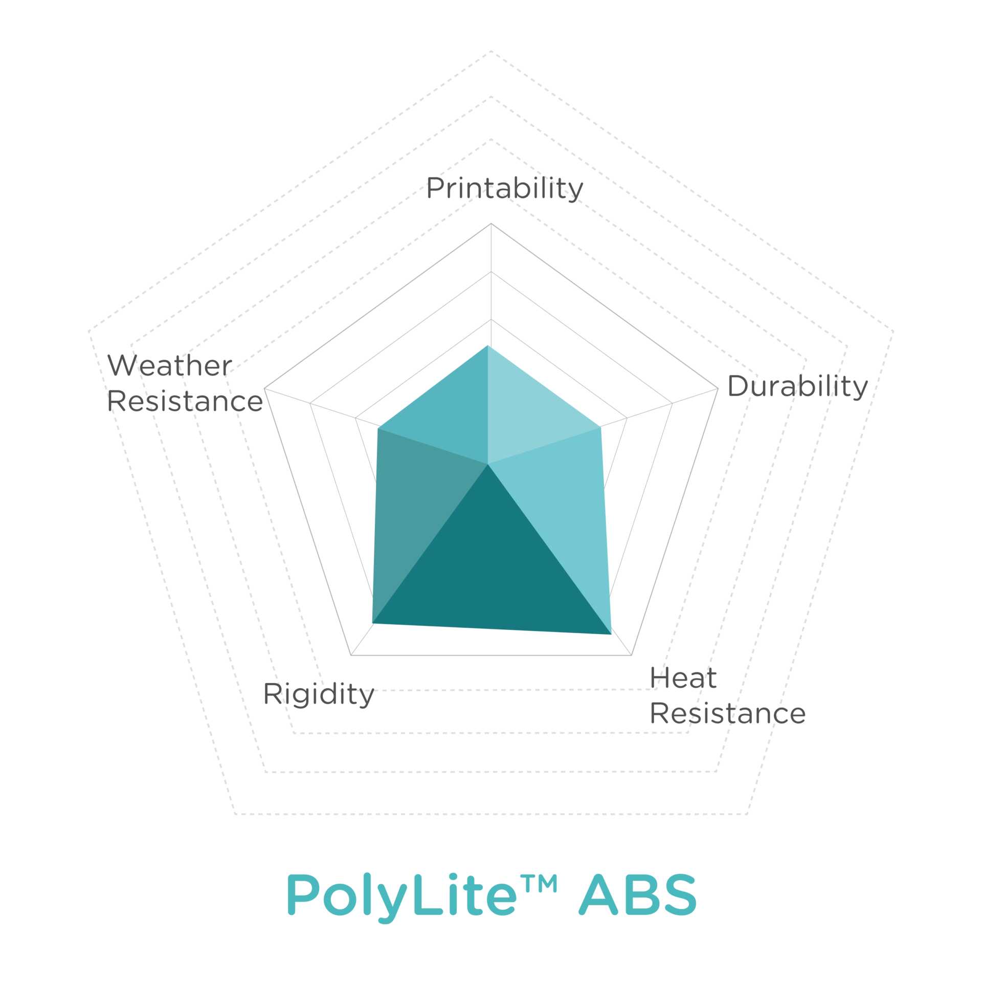 PolyLite™ ABS is made with a specialty bulk-polymerized ABS resin, which has significantly lower volatile content compared to traditional ABS resins. It delivers excellent printing quality with minimal odor during printing. Combining impact resistance with heat resistance (~100˚C), PolyLite™ ABS is a good choice for mechanical parts, robotics, functional prototyping or home appliance spare parts.