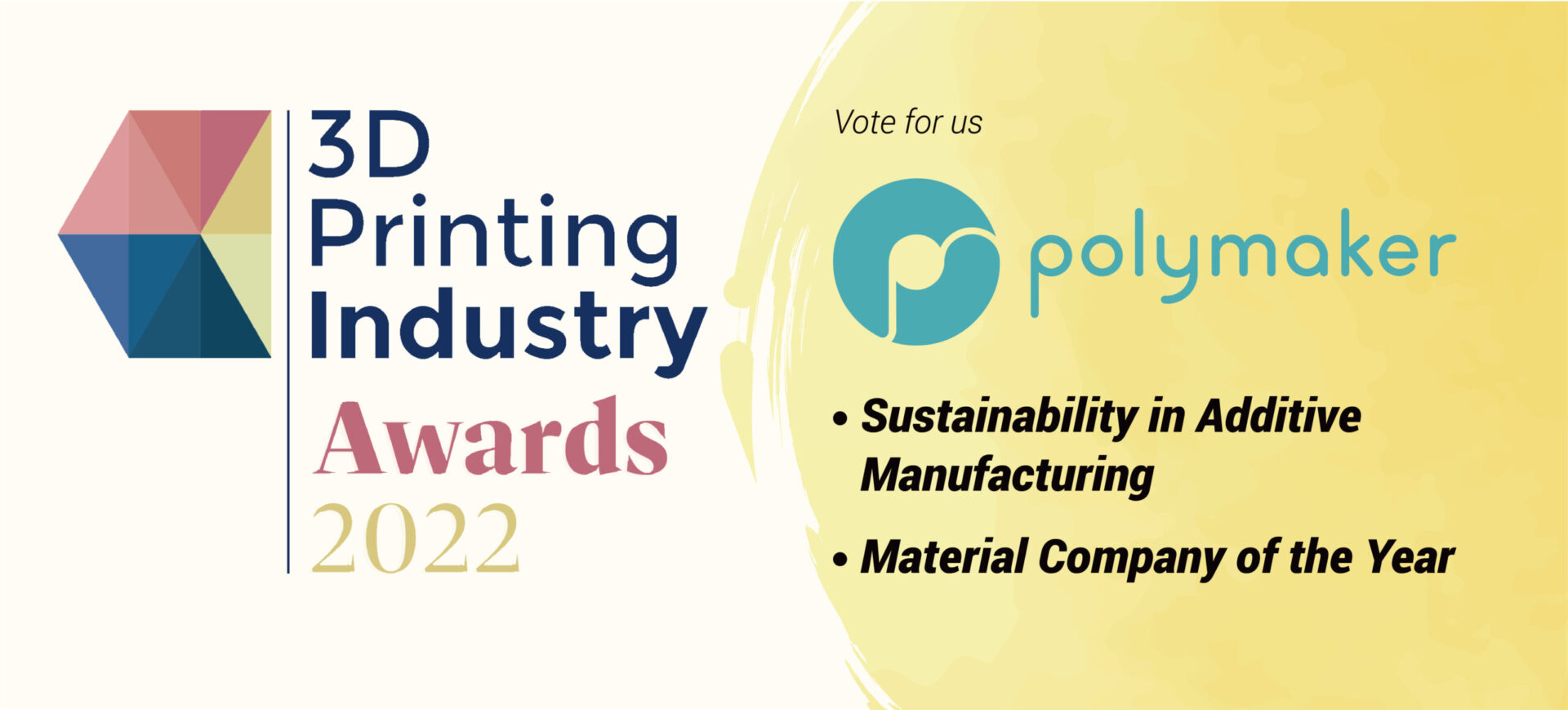 Thanks to your support, Polymaker has been nominated for Sustainability in Additive Manufacturing and Material Company of the Year by 3D Printing Industry Awards 2022.