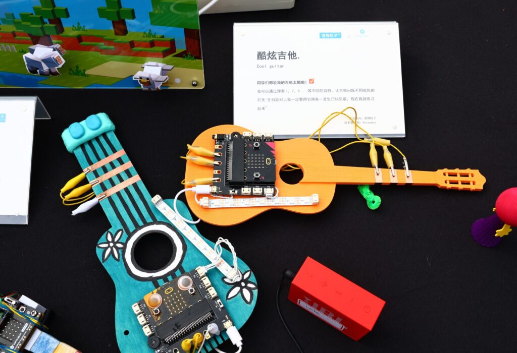 The Smart Birdhouse next to the guitar is printed with PolyTerra™ PLA by The Peep Show. The roof of this smart birdhouse is equipped with a miniature camera that, when placed high up outdoors, allows people on their cell phones to see how the young birds inside the birdhouse are surviving so that they can help at any time.