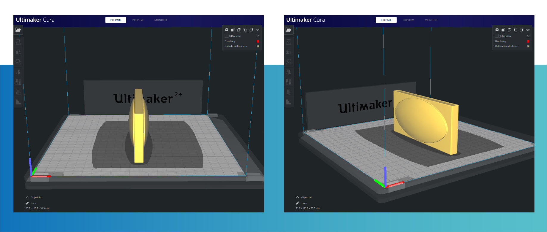 - Choose vase mode (spiral mode) or print in a single shell. Printing one shell will produce the most transparent results as multiple shells will bend the light more. [Compulsory]