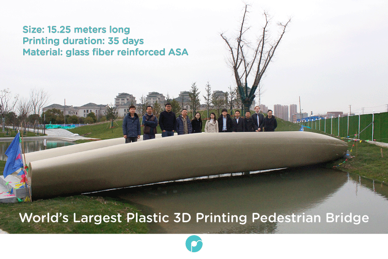 Polymaker & COIN-ROBOT have developed the worlds largest FFF plastic printing system commissioned by the Shanghai construction group to print large scale plastic parts. The first project is a pedestrian bridge which will be the longest 3D printed landscape bridge in the world, located in a public park in Shanghai.