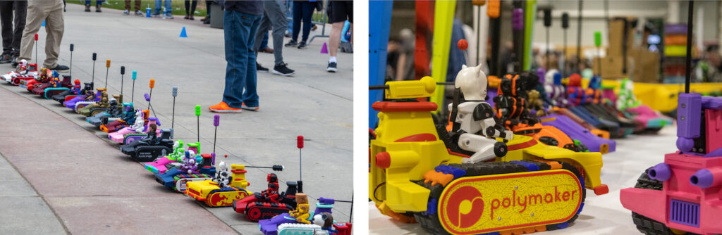 The booth featured several captivating displays that drew in many visitors. Among them was a helmet from a complete Iron Man MK45 costume, fully automated to open and close, and printed entirely in PolyLite™ CosPLA by Squires Cosplay. Other highlights included the RAYON Concept fashion shoes made from PolyFlex™ TPU95 by Kacimi, a fully functional RC boat named MiniRIPPER, with the outer structure printed in PolyLite™ ASA and the internal parts printed in PolyMide™ PA6-CF by Hillprinties, and custom hotends printed with PolyLite™ ABS, a collaborative project by BobFromCalifornia with contributions from numerous community members.