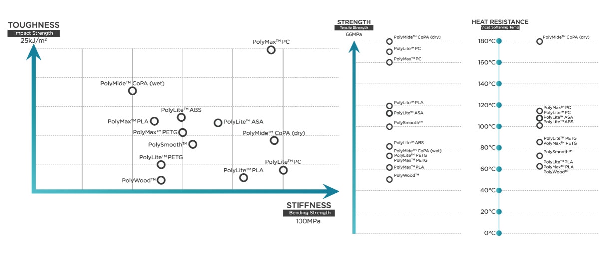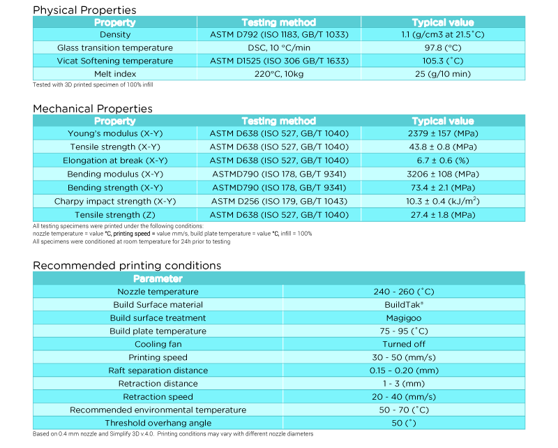 To break it down, PolyLite™ ASA performs better in both thermal and mechanical properties compared with general ABS filaments. It also features a Vicat softening temperature of 105℃ which slightly exceeds ABS.