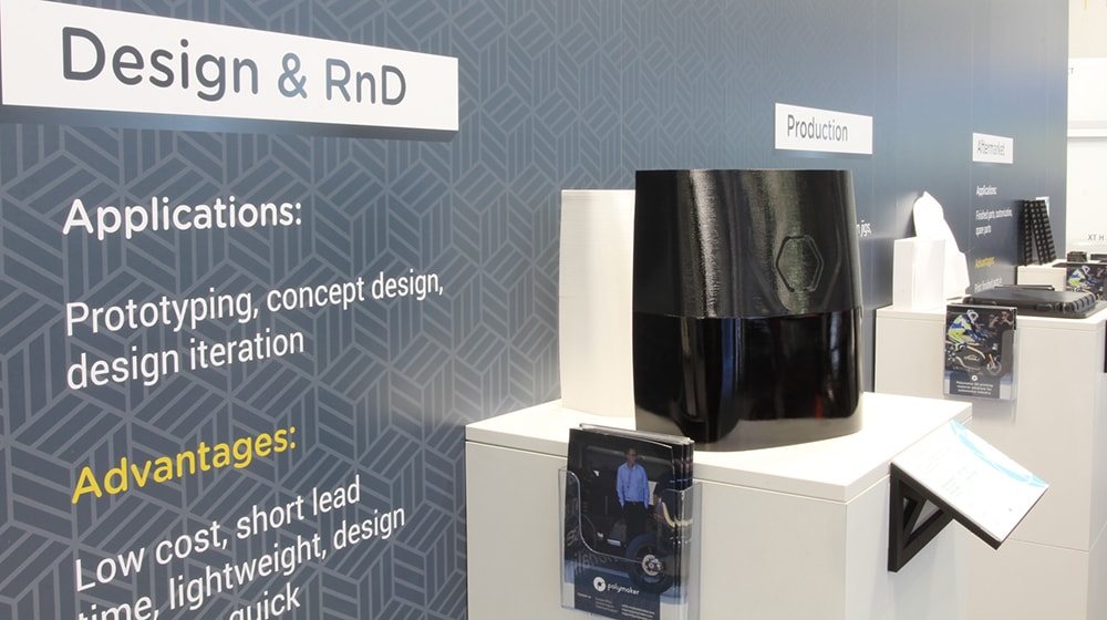 To show the results of working on this, Polymaker exhibited case studies in automotive, construction, aerospace, UVA, fashionwear and gaming industries, covering industrial, professional, and consumer markets at TCT.