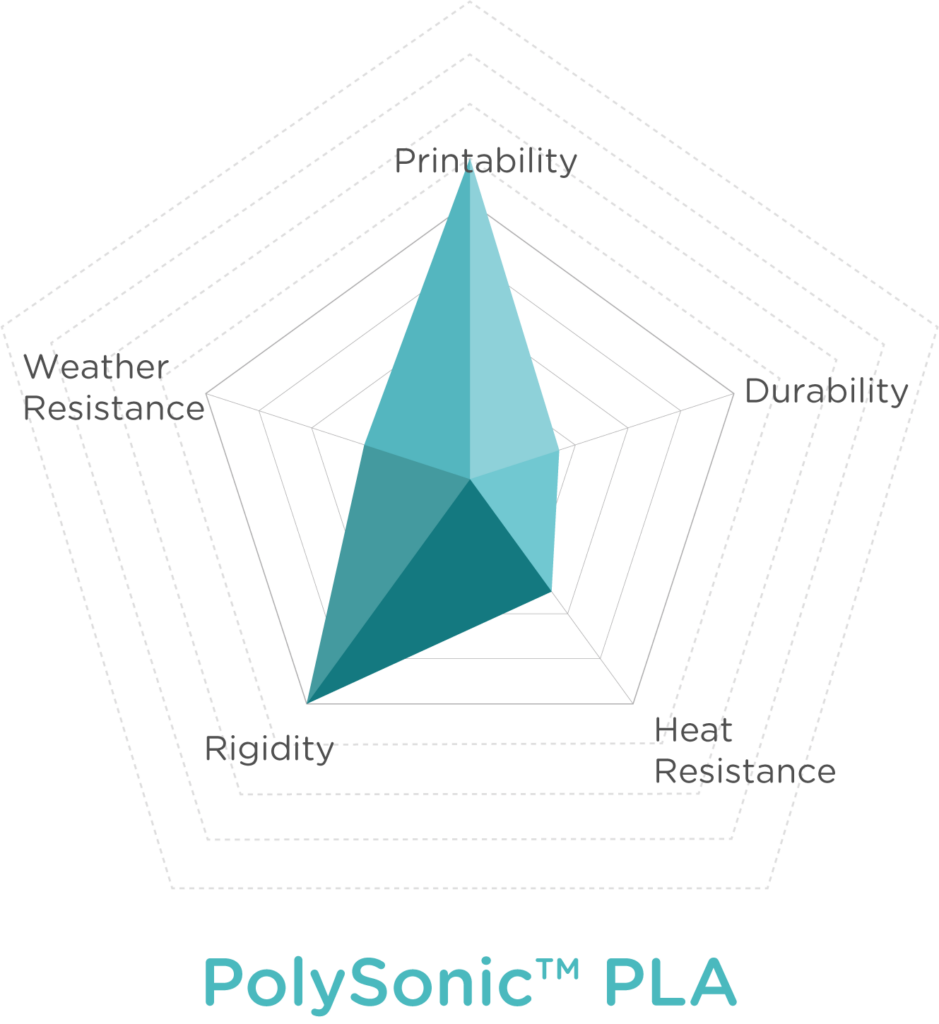 PolyLite™ ASA is resistant to Environmental Stress Cracking. This allows printed parts to face the outdoors, high humidity and rain over long periods of time.