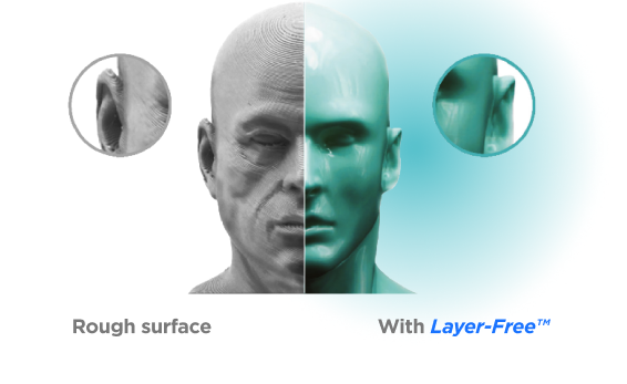 Layer-Free™(消除层纹技术)将通过雾化器处理的酒精雾均匀覆盖在3D打印件的表面,打印件表面吸收酒精之后,层纹会被消除,变得平滑光洁。