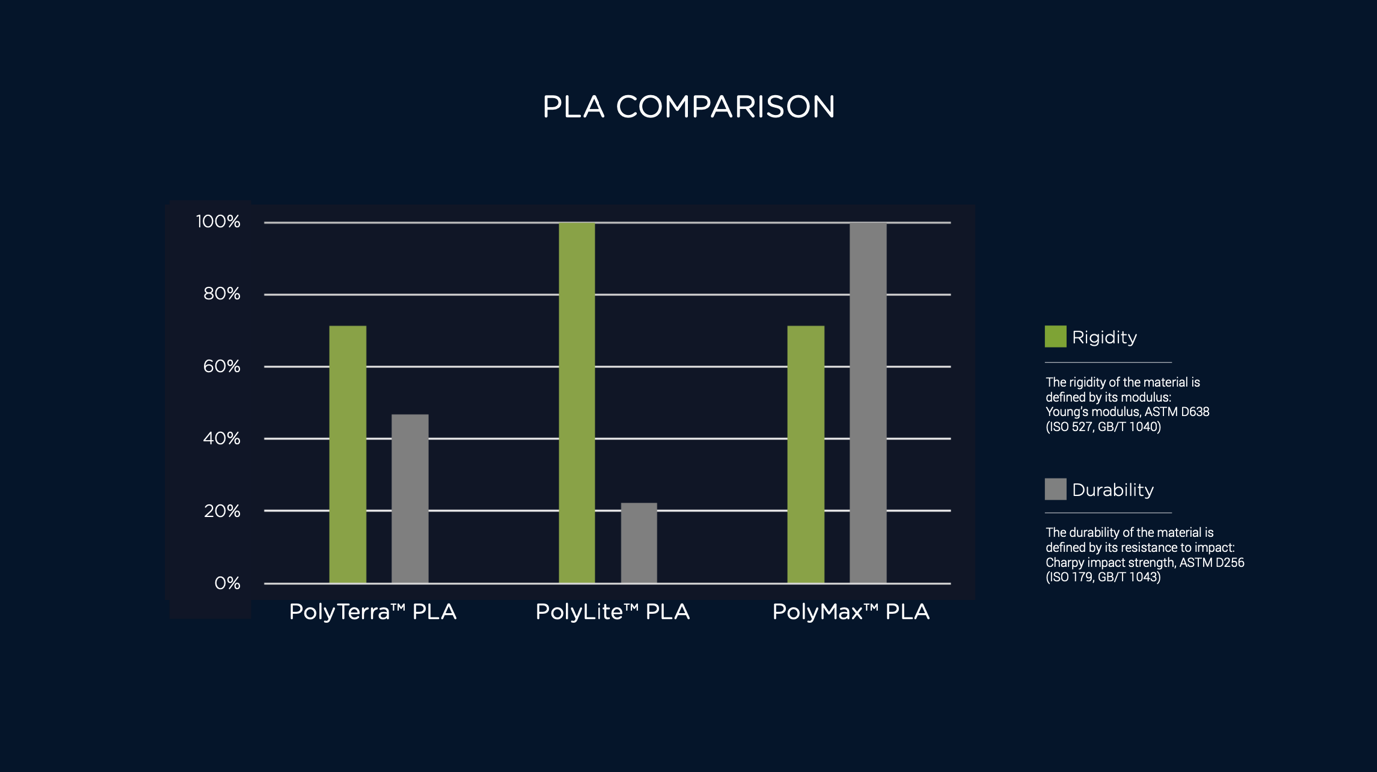 PolyTerra™ PLA is a bioplastic 3D printing filament designed from the ground up to create the next generation of environmentally friendly filaments. Polymaker has combined organic minerals with PLA which significantly reduces the plastic content producing a more environmentally friendly 3D printing material.