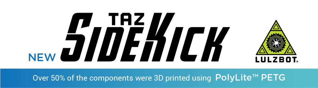 Our long-term strategic partner and friend LulzBot has released the latest addition to their TAZ line of desktop 3D printers, the TAZ SideKick. This printer is available in two sizes and is designed to be highly configurable, so that customers can match their machine to their needs.