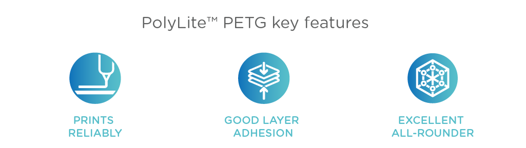PolyLite™ PETG is available for customers in 12 colors in 1kg spool, and 2 diameters (1.75 mm & 2.85 mm). PolyLite™ PETG can be purchased from
