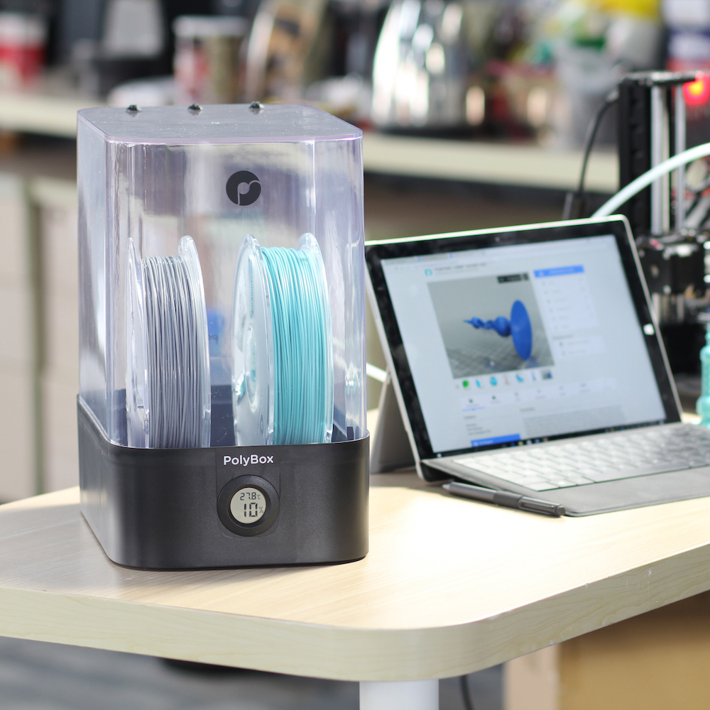 PolyBox™ – 一款精心打造的先进干燥存储解决方案,为您的3D打印材料创造理想环境。专为与所有3D打印机无缝集成而设计,PolyBox™ 可容纳两个1公斤的线盘或一个3公斤的线盘。引以为傲的是,它配备了8个精密轴承和一台准确的温湿度计,让您能够轻松打印、近距离监控盒内温湿度,并完美存储您的材料。