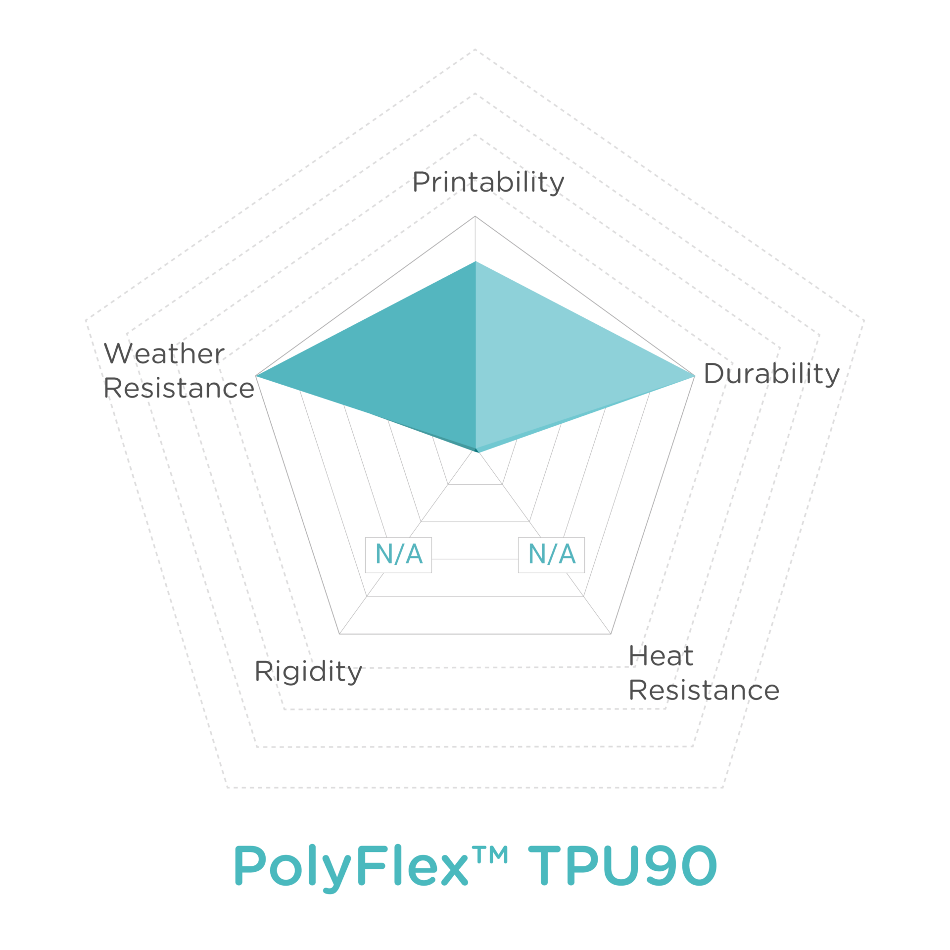 PolyFlex™TPU90,源自科思创(Covestro)的Addigy® TPU系列,在PolyFlex™家族中提供最高等级的柔韧性。邵氏硬度为90A,断裂伸长率为585%,这款柔性线材极其柔软且易打印。TPU90通过ISO10993认证,可用于医疗和皮肤接触设备。