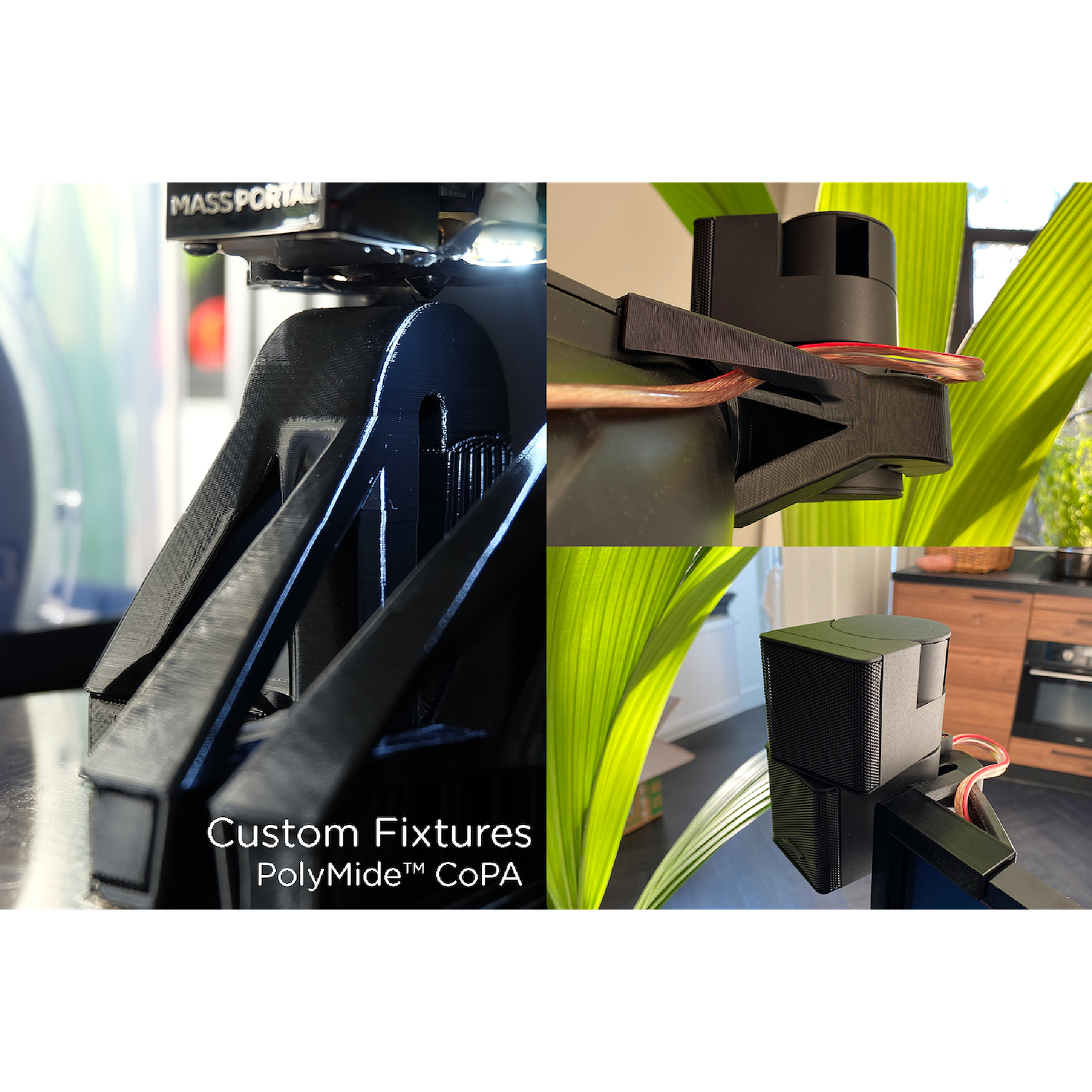 PolyMide™ CoPA is a copolymer of Nylon 6 and Nylon 6.6 combining high tensile strength properties from Nylon 6 with heat resistance properties from Nylon 6.6. Warp- Free™ technology provides ease of printing by slowing down the crystallization allowing CoPA to be easily printed on open bed printers. Displaying outstanding mechanical and thermal properties, CoPA is suited for parts in demanding environments.