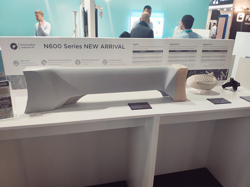 New N600(Nylon 6) series from Polymaker industrials were firstly shown to the public at Formnext as well. The N600 series are a new set of Nylon 6 based filaments with excellent mechanical properties and heat resistance. Designed for applications that require strong parts such as tooling in automotive, aerospace, industrial manufacturing and consumer goods. The N600 series is equipped with Polymaker’s Warp-Free™ Technology which allows large scale printing without a heated chamber. The first three N600 series products are N600 (Nylon 6), N600GF25 (Glass fiber reinforced Nylon 6) and N600CF20 (Carbon fiber reinforced Nylon 6).