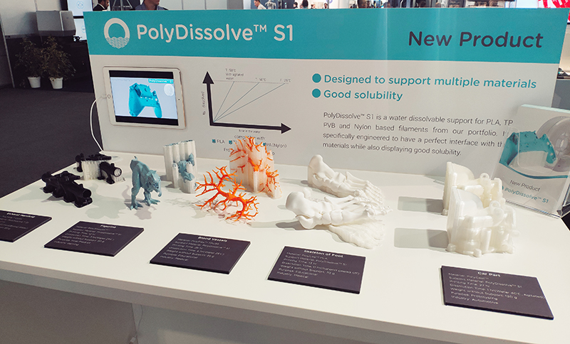 PolyDissolve™ S1 is the first product of PolyDissolve™ family. This family offers dissolvable support solutions for Polymaker filaments, PolyDissolve™ S1 is tailors specifically for PLA, TPU, PVB and Nylon and works well with PolyMax™ PLA, PolyLite™ PLA, PolyWood™, PolyFlex™ TPU95, PolySmooth™, PolyCast™, PolyMide™ CoPA so far. Polymaker will grow this family to offer more support options compatible with more materials in the future.